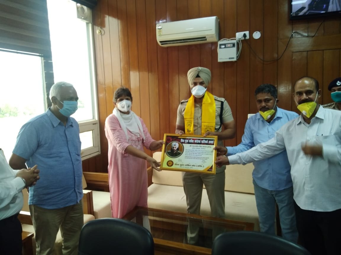 सोनीपत,( संजीव,आवाज केसरी) । सोनीपत जिला के पुलिस अधीक्षक कार्यालय में आज पूर्व आईजी डॉ सुमन मंजरी ने पुलिस अधीक्षक जशनदीप सिंह रंधावा सहित कोविड -19 में तैनात पुलिसकर्मीयों व अधिकारियों को सम्मानित किया गया।